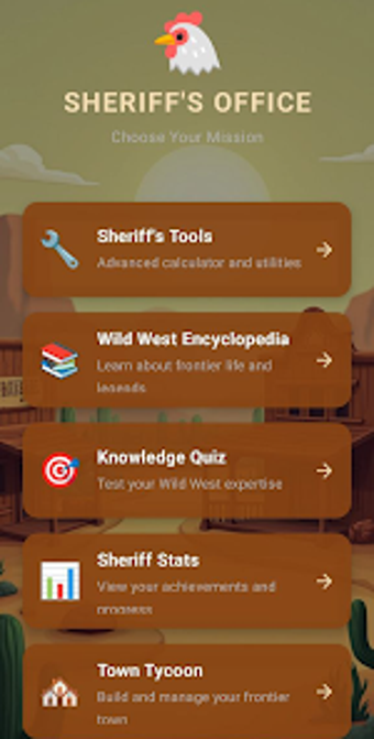 Chicken Road är en gratis Android-app som kombinerar underhållning, utbildning och strategi i en unik Wild West-upplevelse. Spelare får följa den legendariska kyckling-sheriffen Roostina Sheriffa, som erbjuder daglig visdom och inspirerande citat från den gamla västern. Dessutom innehåller appen verktyg som kalkylatorer och transportplanerare, vilket gör den användbar för varje äventyrare. Med en omfattande databas som utforskar västern och dess historia, kan spelare dyka ner i fascinerande artiklar om sheriffer, laglösa och legender som format denna tid.
